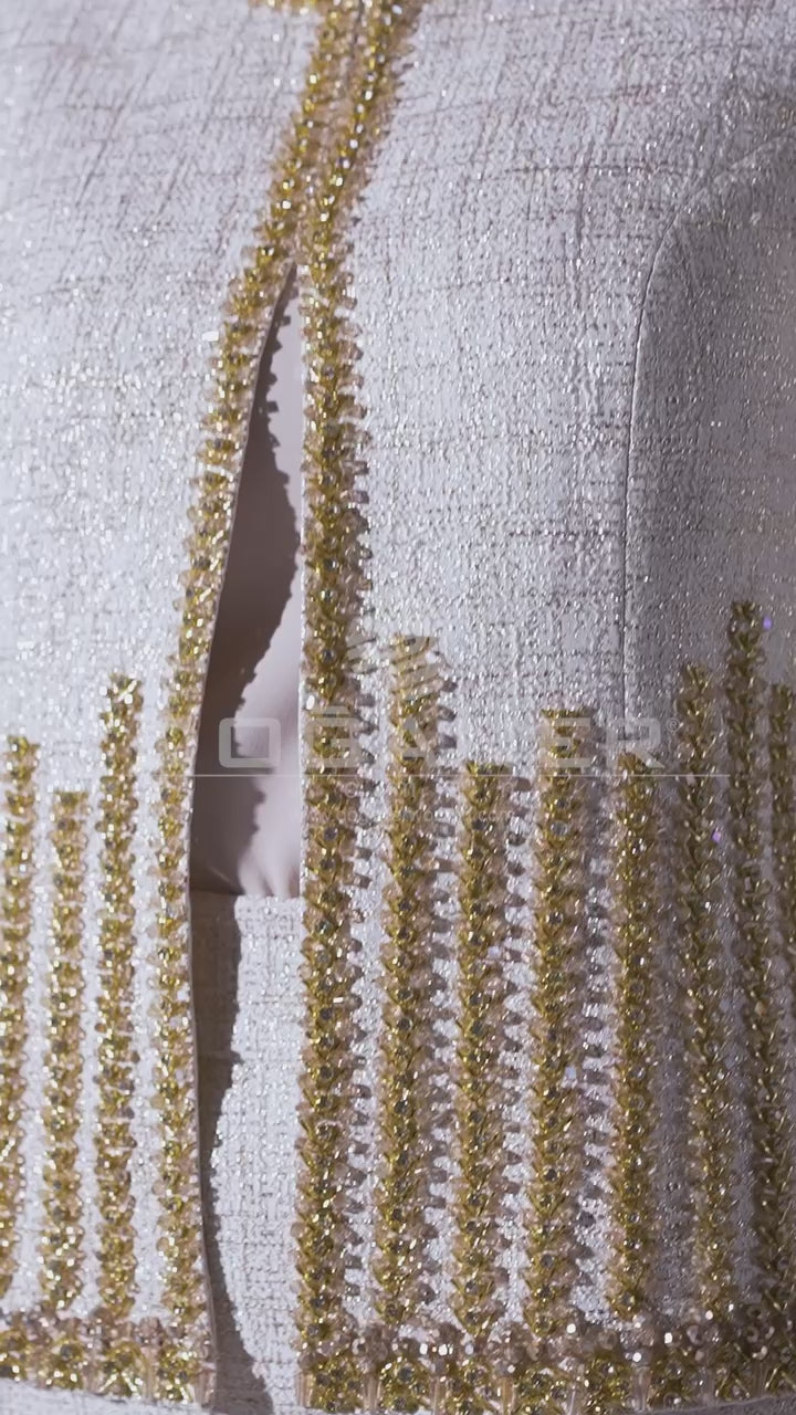 Step into timeless elegance with our women's 3-piece set, featuring a beautifully embellished jacket and a classic skirt. Designed with modesty in mind, this ensemble is adorned with luxurious gold accents, adding a touch of sophistication to your look. Made from premium cotton, it ensures comfort while exuding grace. Perfect for any refined occasion, this set is a must-have addition to your wardrobe.